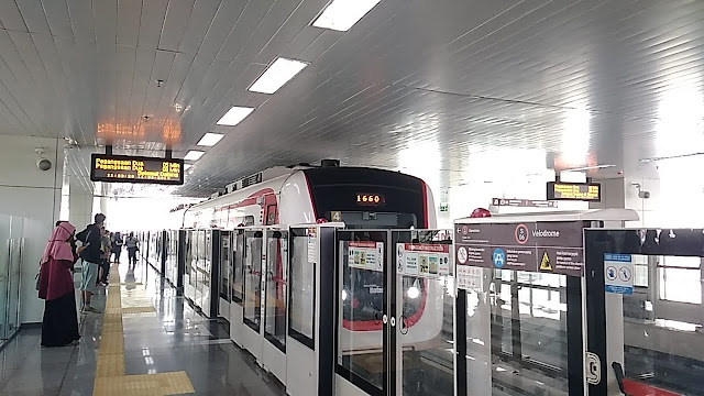Saya datang dengan "disambut" oleh petugas berseragam, mulai dari petugas keamanan kereta, petugas operator LRT, sampai petugas kepolisian. Tentunya bukan disambut beneran, tapi mereka sudah memenuhi peron stasiun. Mungkin untuk menjaga keamanan, atau juga untuk menunggu kereta LRT datang lagi.